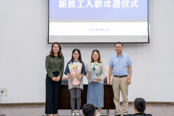 首先,学院举行了新教工欢迎仪式,为新入职教师送上鲜花,期待两位老师在数学学院实现自己的新发展,为学院建设贡献力量。