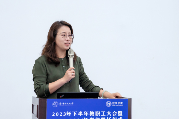 9月15日下午,数学学院召开了2023年下半年教职工大会暨2023-2026年岗位聘任仪式,学院领导班子成员和全体教职工参加了会议,会议由学院党委副书记周佼佼主持。