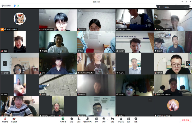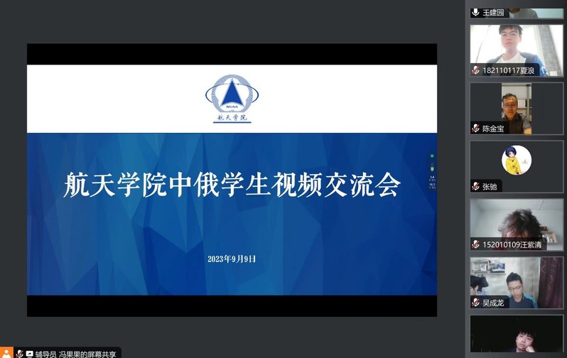 9月9日北京时间15:00,萨马拉时间11:00,南京航空航天大学航天学院通过腾讯会议召开中俄学生视频交流会,航天学院党委书记孙占久,常务副院长陈金宝、党委副书记林晓、副院长盛庆红,副院长王寅参加本次会议,2020级、2021级中俄班班主任、辅导员以及教务员共同参会,与36名本科生、3名研究生同学进行交流。