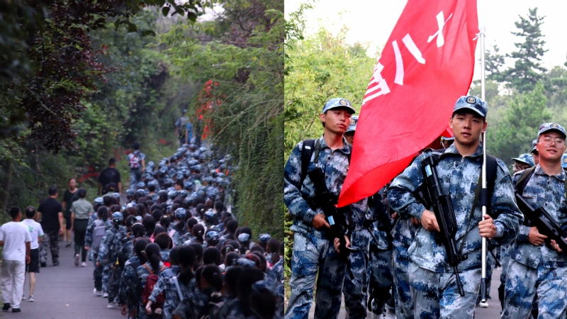 9月11日凌晨,十公里拉练伴着星光拉开帷幕,长空学院的“新兵们”背上行囊,踏着矫健的步伐,宛如一条长龙般穿梭在屏翠山中。虽然汗水早已浸透衣裳,但每一位同学都尽自己最大的努力跟上队伍,绝不掉队。