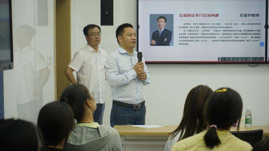 9月25日晚,人文与社会科学学院在院楼213智慧教室开展“人文大讲堂”专题讲座。本次讲座邀请到上海交通大学凯原法学院教授王福华就“公益诉讼专门立法问题”开展学术交流。学院专业教师代表、学生代表参加了本次讲座,讲座由院长高志宏主持。