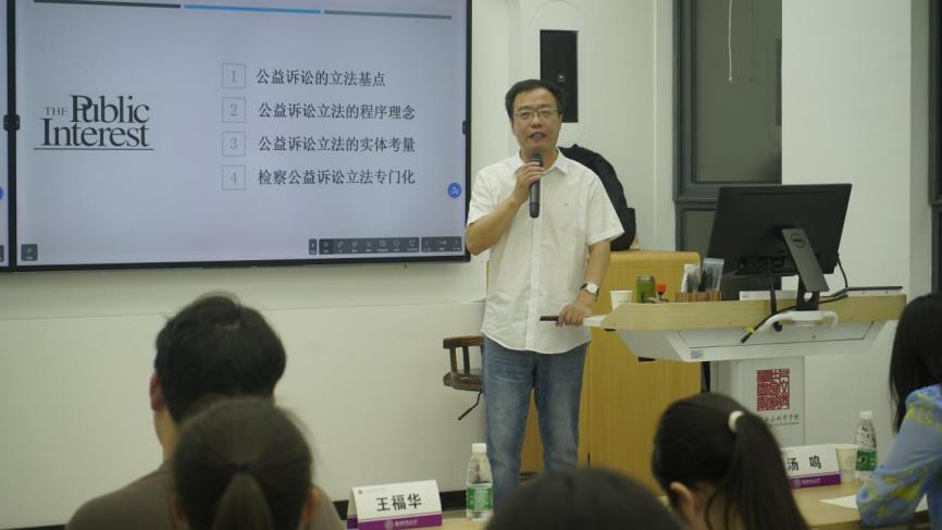 本次讲座中,王福华从公益诉讼的立法基点、公益诉讼立法的程序理念、公益诉讼立法的实体考量、检察公益诉讼立法专门化等四个方面出发,阐述了公益立法的基本问题。
