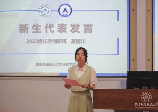 新生代表夏晴川讲述了自己成为创新班一员的自豪与对未来的热切期待,呼吁创新班学子们树立远大志向,坚定理想信念,以实际行动将责任意识、创新精神、国际视野和人文情怀的人才培养目标融入成长轨迹。