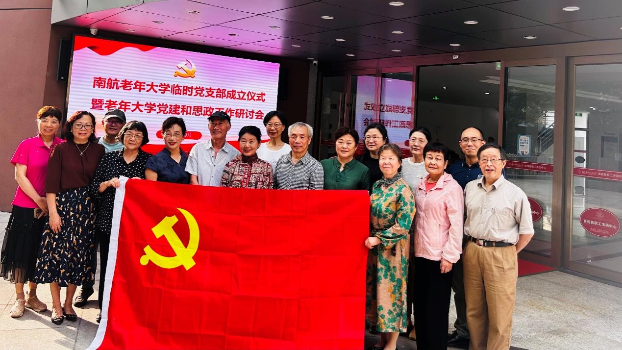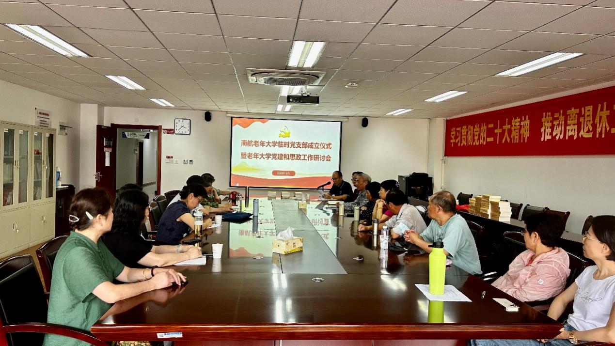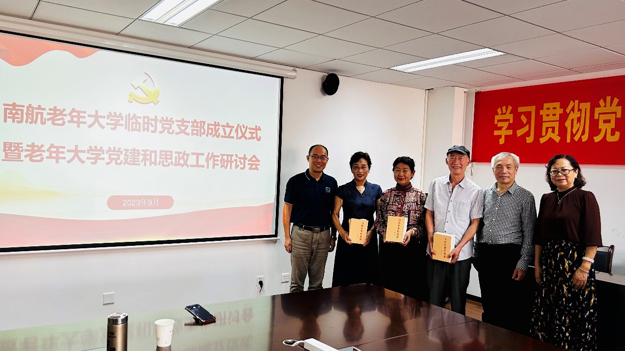 为加强南航老年大学党的领导,推进老年大学高质量发展,离退休党工委会商离退休处,研究决定在南航老年大学成立临时党支部。9月27日,南航老年大学临时党支部成立仪式暨老年大学党建和思政工作研讨会在西苑活动中心举办。离退休党工委书记方正、离退休处处长张环、老年大学常务副校长彭建华及老年大学管理人员中的老党员、各班班主任中的老党员参加会议。