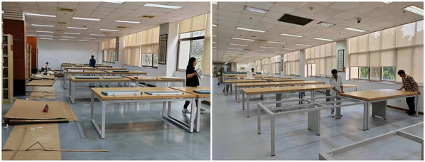 为了尽量减少对师生学习的影响,图书馆精心策划、周密安排。图书馆组织施工人员在闭馆期间拖运损坏的桌椅,在读者最多的二楼阅览室安装了近三百个座位的新桌椅,更换了三楼阅览室部分桌椅。经过四天的紧张工作,阅览室内焕然一新。新桌椅色彩搭配更明快,高度也更适合学生,阅读体验更舒适。大家纷纷对图书馆的这一举措表示赞赏。