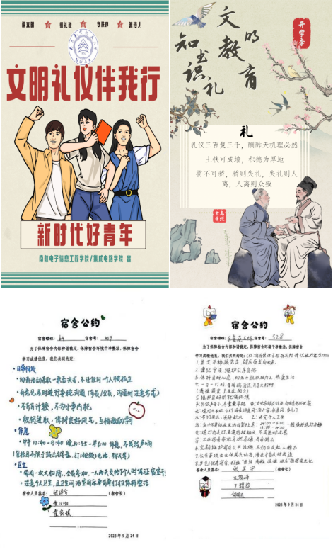 各学院结合专业特点和相关优势,为激发学生文明礼貌的创造热情,开展有关文明礼貌的特色活动。电子信息工程学院/集成电路学院和民航学院也以班级为单位,结合专业特点,进行了特色文明主题海报设计;计算机科学与技术学院/人工智能学院/软件学院为积极构建和谐宿舍氛围,培养良好生活习惯,举办“一纸之约 一室之暖”最美宿舍公约评选活动。