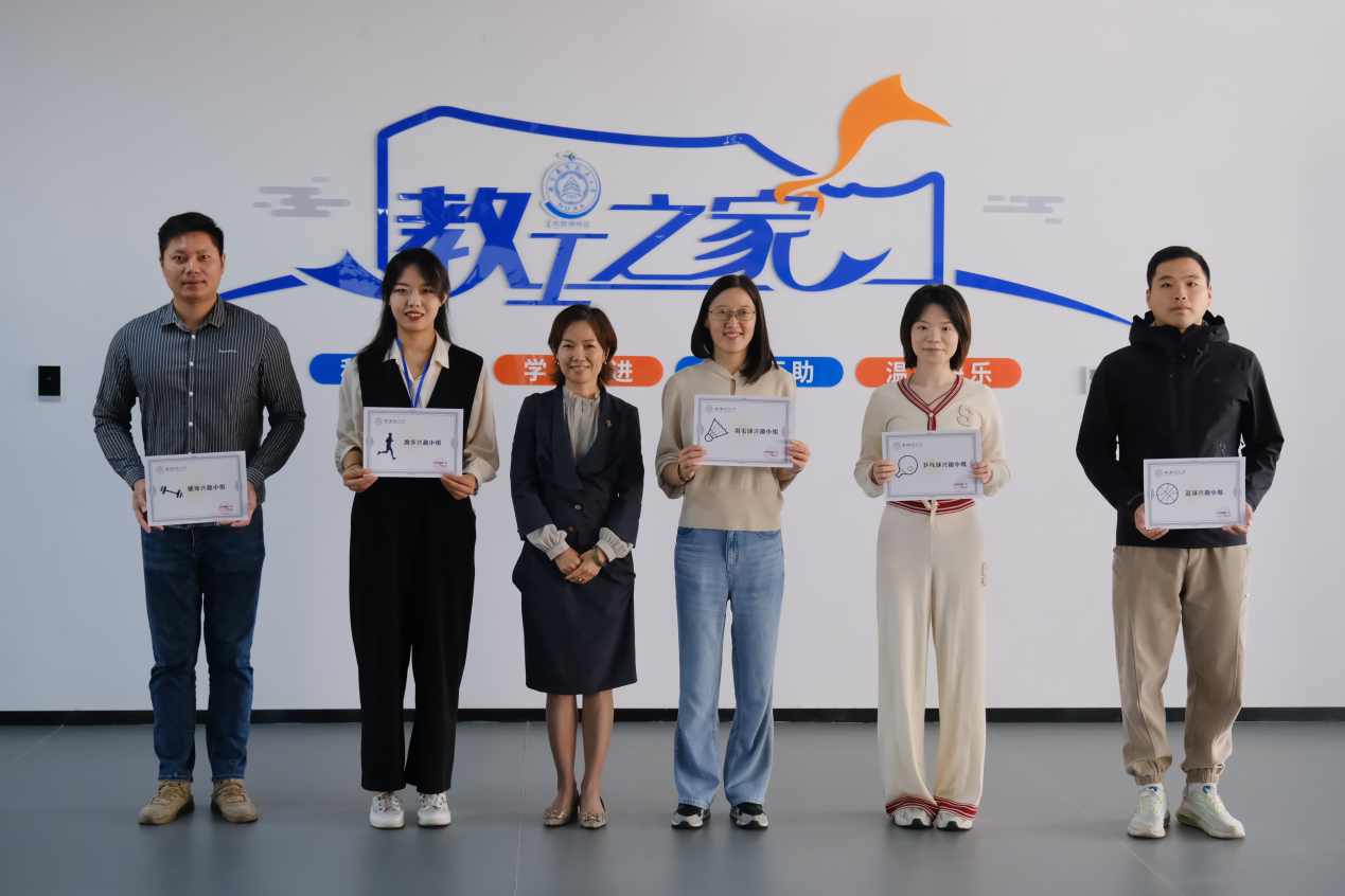 谢瑶为天目湖校区工会下设的篮球、乒乓球、羽毛球、跑步、健身等兴趣小组授牌。