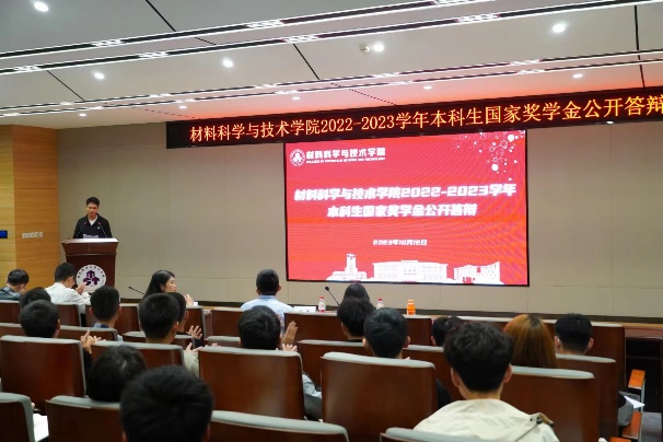 为充分发挥榜样育人的作用,激励更多同学见贤思齐、矢志奋斗,近日,材料科学与技术学院2022-2023学年本科生国家奖学金公开答辩在东区材料楼B501报告厅召开,学院党委副书记庄晓舒、材料加工工程系系主任林开杰、核科学与技术系系主任刘云鹏、应用化学系系副主任刘初阳、材料科学系系副主任丁兵和学生代表共同担任评委。100余名2023级本科生到场学习观摩。