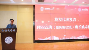 038911班班长田东旭、148922班班长姚宗信作为校友代表分别发言。田东旭回忆了初进南航的校园时光,从录取通知书上的一笔一划到领取毕业证书的欢乐场景,如今都还历历在目。389级校友见证了母校的跨越式发展,为母校三十年的进步感到自豪和骄傲,并希望下个十年大家继续聚首母校。姚宗信对学院的热情安排表示感谢。他指出,许多继续奋斗在航空航天事业的南航毕业生,始终秉承着航空报国初心,坚守创新精神,敢于突破,创造了诸多成绩,衷心地祝愿母校和母院发展越来越强。