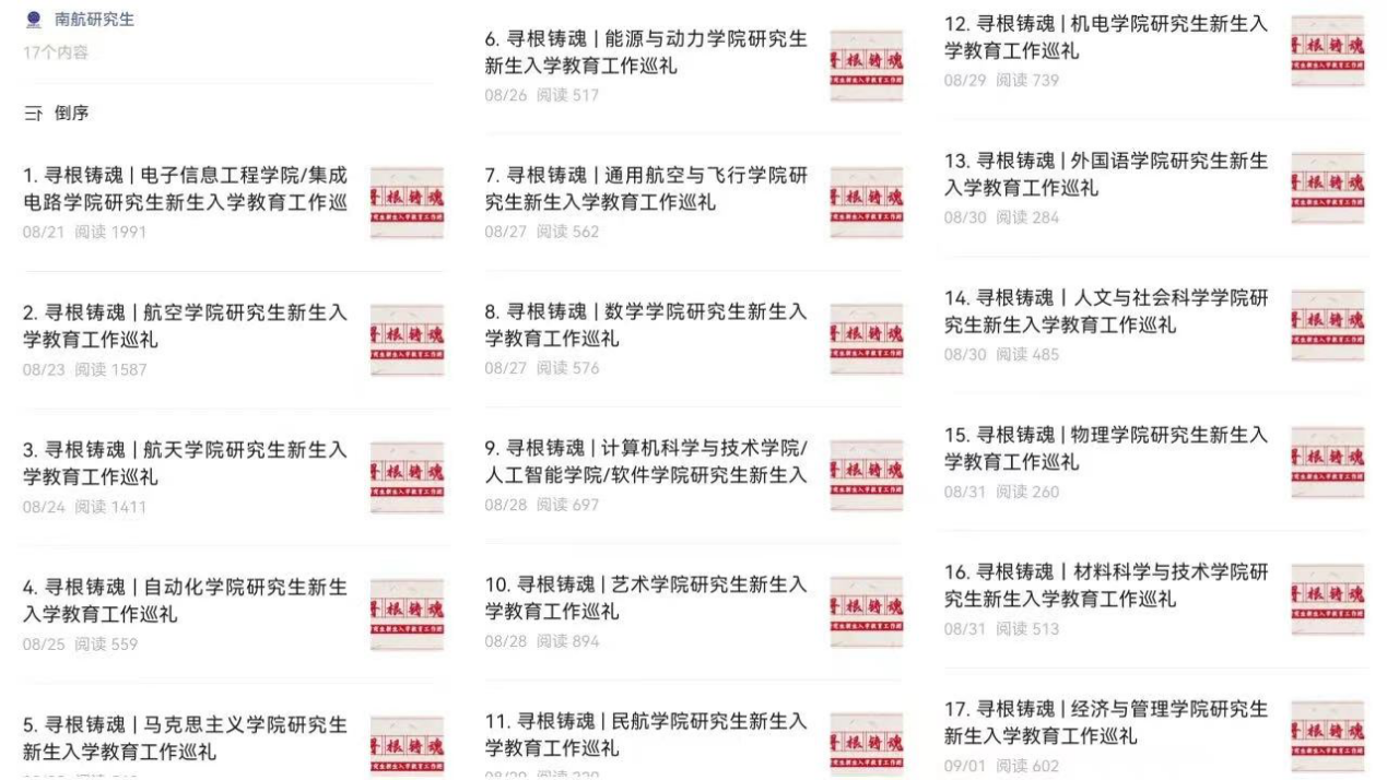 自动化学院、机电学院、人文与社会科学学院、航天学院通过带领研究生新生走访“御风园”航空航天教育教学实践基地、南京航空航天馆、航天教育教学基地、校史馆、立德树人馆等实践育人基地,丰富入学教育学习载体,打造“浸润式移动课堂”,感受南航负重奋进、自强不息的发展历程,传承红色基因,赓续蓝色梦想。