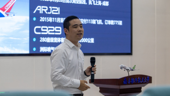 10月19日,自动化学院于天目湖校区巡天楼报告厅成功开展“十五年回望商用大飞机的自主研制之路”信仰公开课。中国商飞公司上海飞机设计研究院飞机电控集成工程技术所党总支书记李忆、党政办副主任傅璟裔,南京航空航天大学天目湖校区管委会副主任潘顺荣与两百余名自动化学子出席讲座。本次讲座由上飞院飞机电控集成工程技术所电控软件部副部长兼党支部书记易子淳主讲,围绕中国商用大飞机发展历程、C919大飞机的自主研制之路、大飞机人的信仰与方向三个方面展开,并与同学们详谈大学目标和规划。讲座由自动化学院党委副书记丁琛主持。