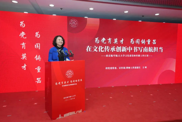 王晖作主题为《为党育英才,为国铸重器,在文化传承创新中书写南航担当》的专题汇报。