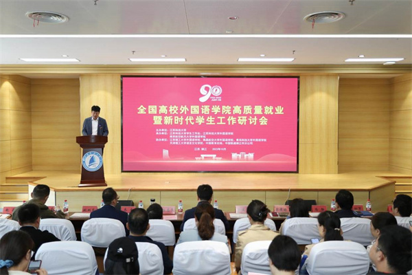 为进一步落实“立德树人”根本任务,探索新形势下积极促进高校外语专业毕业生高质量充分就业工作新举措,10月20日,我校外国语学院与江苏科技大学外国语学院联合承办全国高校外国语学院高质量就业暨新时代学生工作研讨会,来自江苏、甘肃、江西、安徽、河南、上海、天津等11个省区市外国语学院学生工作负责人和就业辅导员参会。