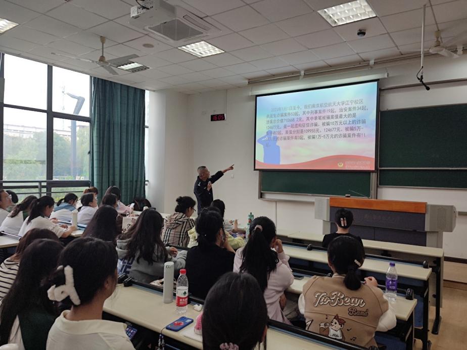 针对近年来电信网络诈骗高发的现状,为进一步提升学院学生的自我保护意识、防范意识,预防网络电信诈骗,切实保护自身财产信息安全,10月19日,外国语学院开展了防范电信网络诈骗专题宣讲活动。活动邀请了江宁公安分局开发区派出所驻我校警务室娄军来警官担任主讲人,外国语学院团委书记李萍、本科生研究生学生代表参加本次活动。