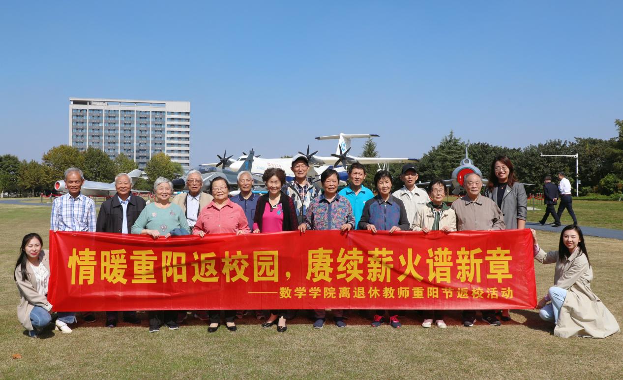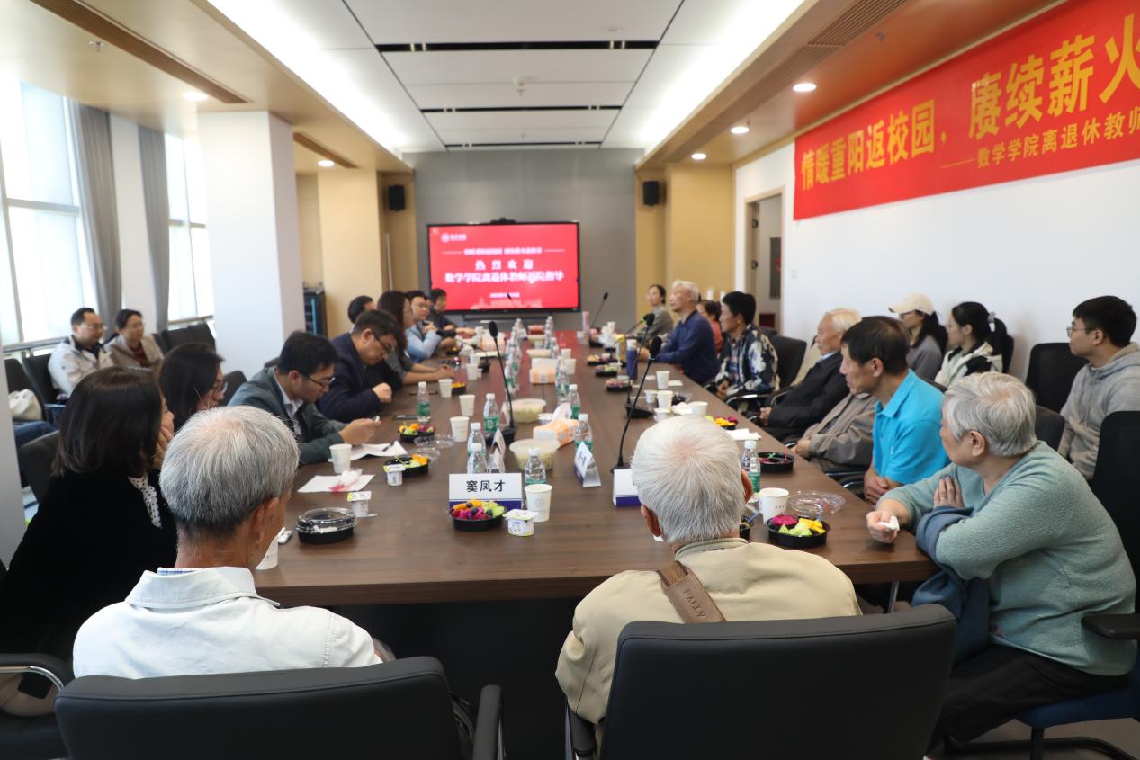 丹桂飘香又重阳,两九相逢表情谊。10月23日,农历九月初九重阳节,数学学院15名离退休教师们回到曾经工作过、奋斗过的校园,开展“情暖重阳返校园,赓续薪火谱新章”数学学院重阳节离退休教师返校活动。全体班子成员,教工党支部书记、教师代表、学生党员代表、机关工作人员喜迎老教师返园,共同重温拼搏岁月,追寻奋斗足迹,共话学院发展。