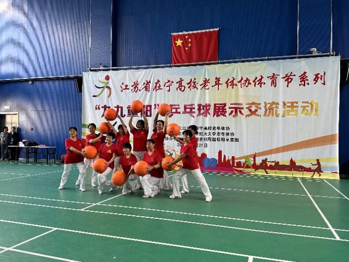 为活动现场氛围、推广无极球运动,我校离退休老同志们带来了无极球表演,让大家感受到了无极球运动“人球合一,健康无极”的独特魅力。