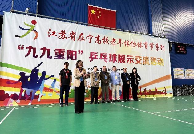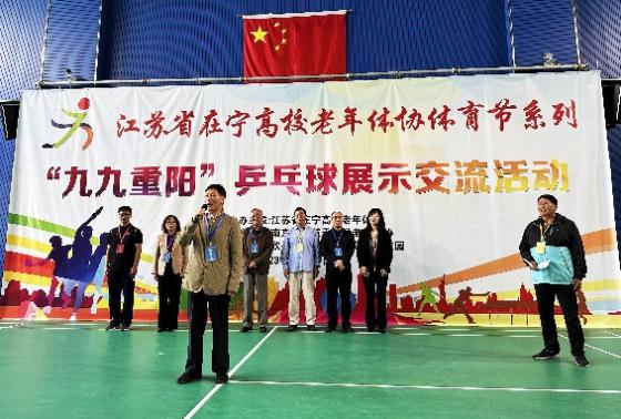 10月21日,由在宁高校老年人体育协会主办、我校承办的“九九重阳”在宁高校老年人乒乓球展示交流活动圆满落幕。在宁高校老体协理事长李国荣、南航老体协理事长袁川耇、常务副理事长胡连城出席,离退休处全体人员与来自21所高校的230余名离退休教职工参加了此次展示交流活动。开幕式由在宁高校老体协副秘书长蔡森主持,我校离退休处处长张环代表承办单位致开幕词,李国荣理事长讲话,他充分肯定了我校为承办本次活动做出的努力,感谢我校离退休处和体育部的大力支持,并希望老同志们本着“重在参与、重在交流、重在快乐、重在安全”的原则上,交流感情、增进友谊、促进身心健康,为推动老年人体育事业的高质量发展增添正能量。袁川耇理事长宣布活动开幕。