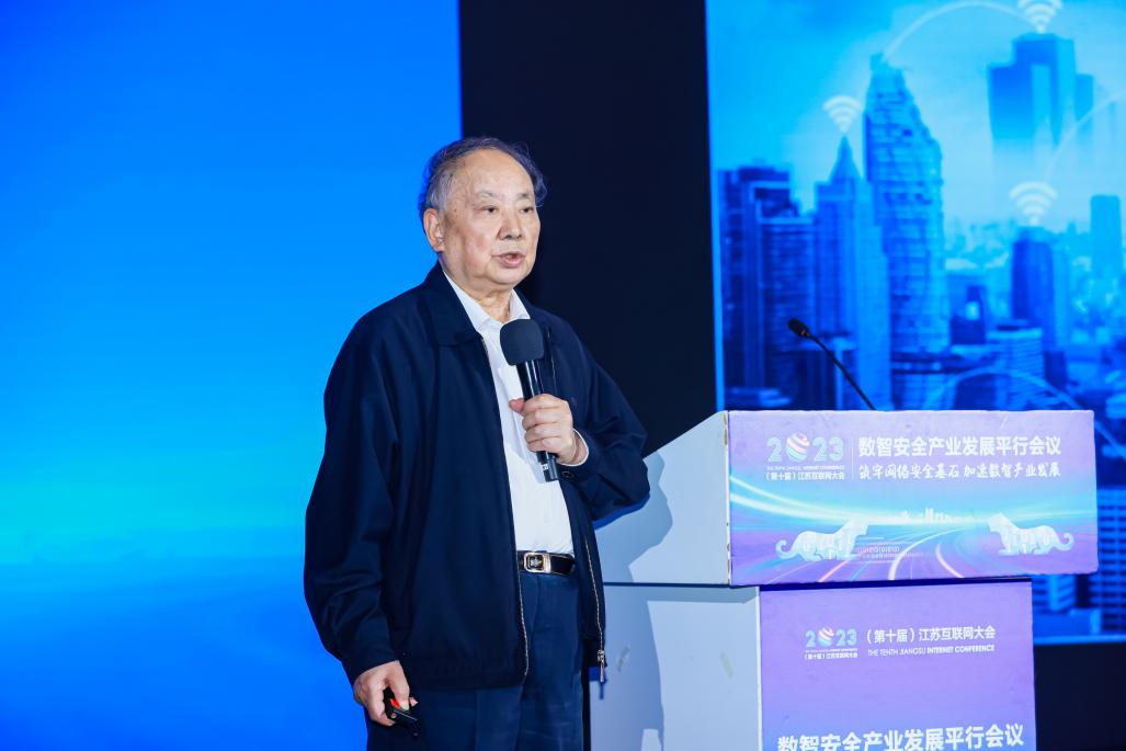 10月23日下午,2023(第十届)江苏互联网大会数智安全产业发展平行会议在南京国际博览中心举行。本次会议由江苏省委网信办、江苏省通信管理局主办,江苏省互联网协会、南京航空航天大学、奇安信科技集团股份有限公司联合承办,以“筑牢网络安全基石,加速数智产业发展”为主题。中国工程院院士沈昌祥,江苏省委网信办副主任陈智,奇安信集团合伙人、副总裁孔德亮,我校副校长黄志球以及高校信息化专家和业内人士共计500余人参加本次会议。