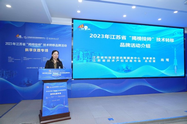 江苏省技术产权交易市场总经理肖莺对本年度江苏省“揭榜挂帅”技术转移品牌活动进行了介绍。