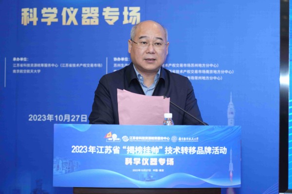 10月25日,由江苏省科学技术厅、中共江苏省委人才工作领导小组办公室、江苏省教育厅、江苏省知识产权局联合主办,江苏省科技资源统筹服务中心、南京航空航天大学联合承办的2023年江苏省“揭榜挂帅”技术转移品牌活动科学仪器专场在我校举行。江苏省科技厅科研机构处副处长李汉中,江苏省科技资源统筹服务中心主任戴力新,副校长黄志球等出席活动,省内近50家高校、科研院所和企事业单位代表参加了活动。国有资产管理处处长刘兼唐主持活动。