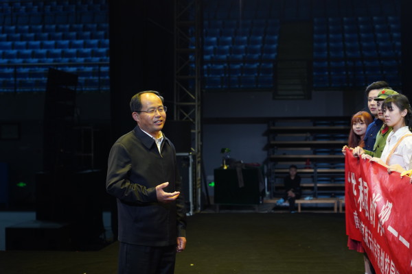 演出期间,校长单忠德来到话剧的演出现场看望慰问正在演出的同学们,与演员们进行亲切交流,并对导演、演员和保障团队的辛勤付出表示肯定和赞赏。他表示,优秀的艺术作品给人以美、给人以教育、给人以启迪,艺术陶冶高尚情操,塑造美好心灵,希望同学们在话剧表演中,感悟并传递艺术的魅力,沿着前辈的脚步,不断进取、矢志逐梦,像“旋翼人生”一样,创造灿烂美好的人生。