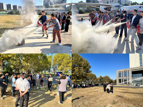 随后,校区管委会组织全体参训人员在西区停机坪开展了灭火器和消防栓使用实操演练。