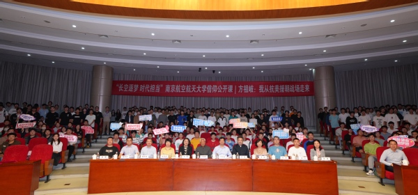 近日,我校举行“长空逐梦 时代担当”信仰公开课暨方祖岐将军新书首发仪式。原中国人民解放军高级将领方祖岐上将为师生授课。校党委书记郑永安,江苏省作家协会副主席祁智,南京师范大学文化艺术研究院执行院长方淩波,校党委常委、宣传部/教师工作部部长王晖出席活动。学生处、长空学院相关负责同志等四百余名师生参加活动。
