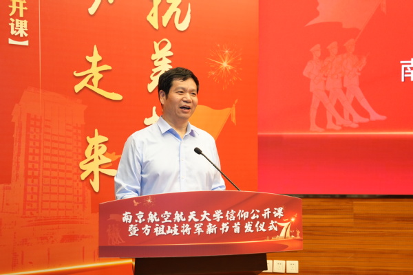 祁智对方祖岐新书发布表示热烈祝贺。他指出,方将军的作品不绕、不虚、不霸、不俗,字字句句都是情之所至,志之所至,能让读者身临其境。他借用辛弃疾《太常引》中的“乘风好去,长空万里,直下看山河”勉励南航学子要乘新时代春风,在祖国的万里长空放飞青春梦想。