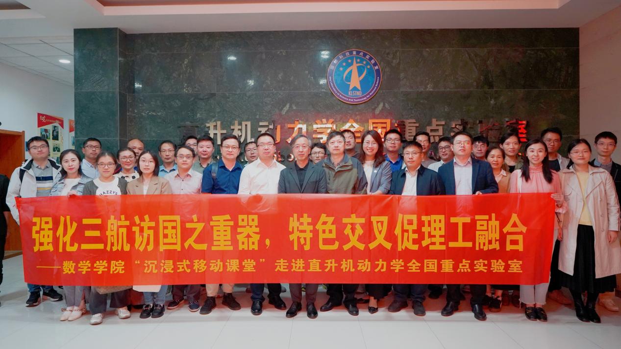 为深入学习贯彻习近平总书记关于加强基础研究的系列论述精神,坚定不移深化“三航”特色,推进学科交叉融合和跨学科研究,11月1日,数学学院“沉浸式移动课堂”走进直升机动力学全国重点实验室。数学学院党委书记许静带队,副院长徐江,教工支部书记及近30名师生代表参加本次活动。