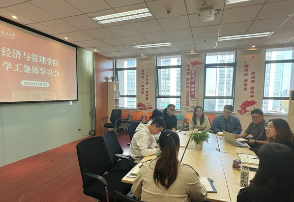 11月1日上午,经济与管理学院在510会议室召开学生工作集体学习会,院党委副书记胡苹,全体全日制学生专兼职辅导员和MBA辅导员黄芮参与本次学习。