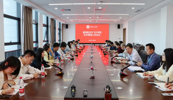 11月2日上午,通用航空与飞行学院召开2023年机关全体会议,院长王勤主持会议并讲话,全体机关管理人员参加会议。