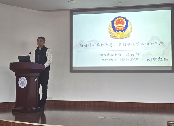 为进一步规范和加强校园危险化学品的安全管理,预防危险化学品安全事故的发生,11月8日,学校组织150余名参与危化品安全管理工作的师生参加安全培训,培训由国资处处长刘兼唐主持,邀请南京市公安局治安管理局副局长周向阳教授作题为《高校科研单位剧毒、易制爆化学品治安管理》的报告。