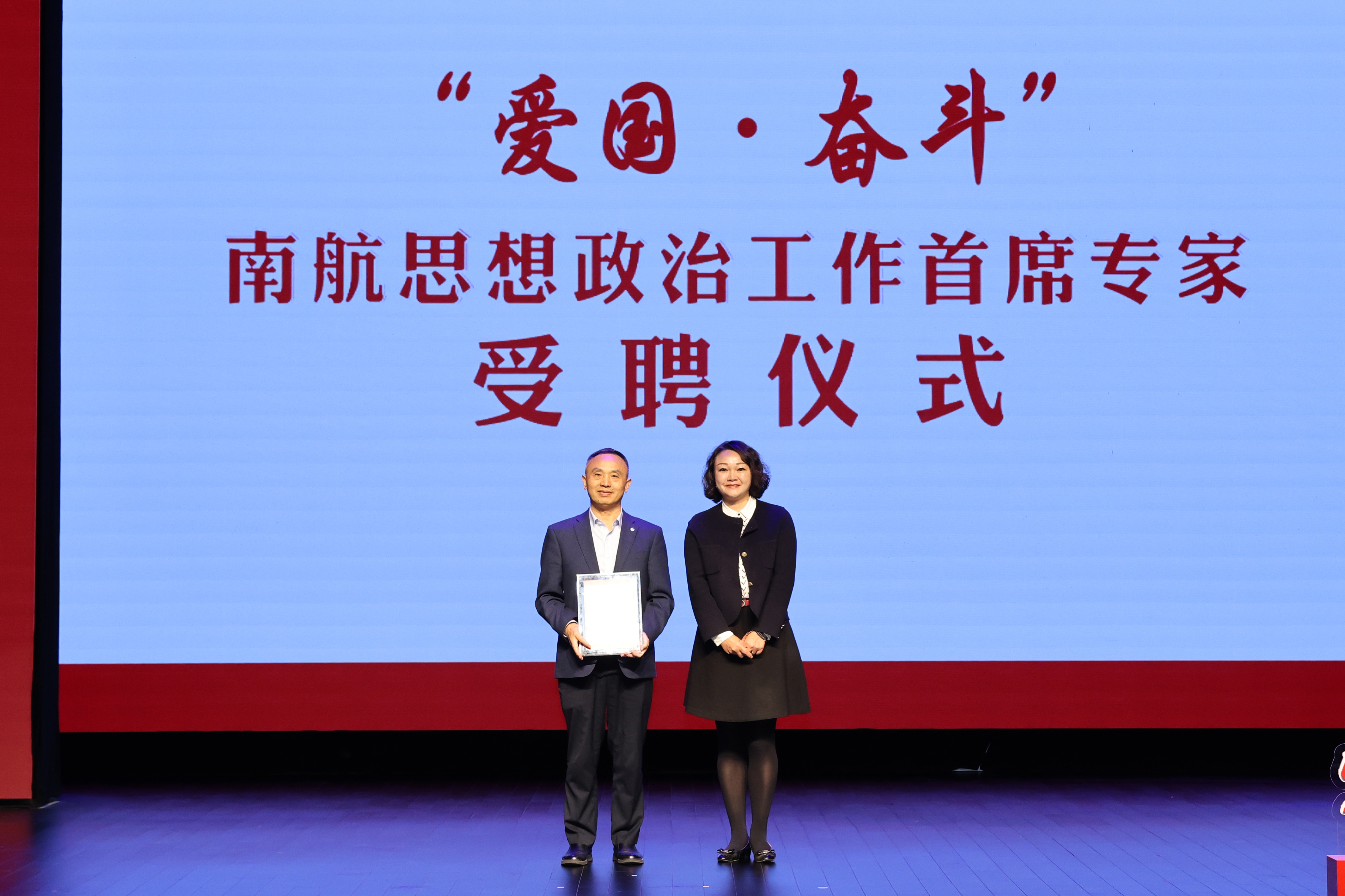 聘任仪式上,徐朝梁受聘为“爱国·奋斗”南京航空航天大学思想政治工作首席专家。