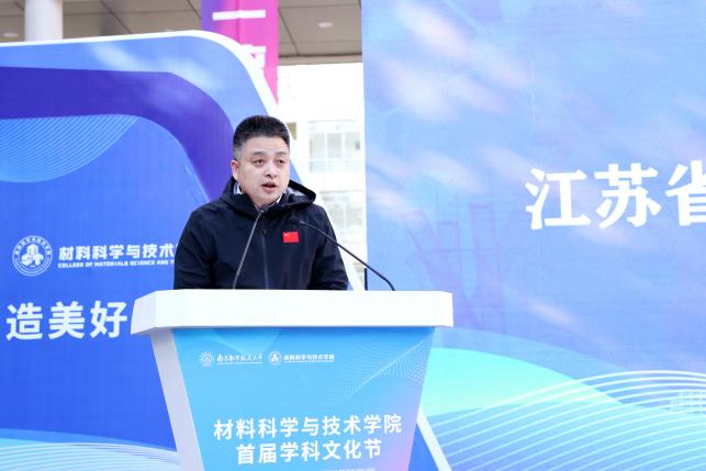 11月18日,材料科学与技术学院首届学科文化节在将军路校区举行。校党委常委、副校长黄志球,湖南航天有限责任公司副总经理、湖南航天管理局副局长何惊华,南京玻璃纤维研究设计院副院长张国,江苏省材料学会秘书长强星,“在宁高校材料学科党建联盟”成员单位南京大学、南京理工大学、南京工业大学、南京林业大学、南京信息工程大学、金陵科技学院相关学院负责同志,江苏省科普服务中心、江苏科技馆相关负责同志,我校党委宣传部/教师工作部、发规处、研工部、学生处、教务处、校团委、科研院、校科协、国资处、基建处、将军路校区管委会、马克思主义学院负责同志,22家企业代表、500余名师生代表参加活动。开幕式由材料学院党委书记石勇主持。