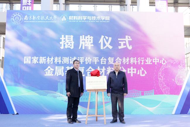 黄志球和张国共同为国家新材料测试评价平台复合材料行业中心金属基复合材料分中心揭牌。宋凯、蔡祺祥、梁文萍为何惊华、中广核集团苏州热工院主任工程师柏广海、江苏爱康科技公司总经理倪志春颁发江苏省产业教授聘书。
