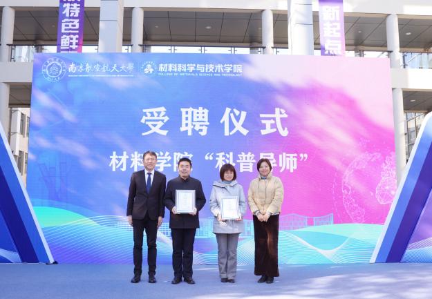 材料学院持续响应国家对科普事业的号召,拓宽科普平台和交流合作渠道,开幕式上举行了“江苏省材料学会科普基地”揭牌仪式。强星和冯绍红揭牌并为江苏省科普服务中心主任王岩、江苏科技馆展教部部长许艳颁发“科普导师”聘书。