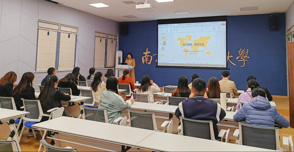 祖语嫣以《非凡十年,绘就千年丝路新画卷;跨越山海,谱写国际合作新篇章》为题,介绍了国家高质量共建“一带一路”十周年的非凡成就以及南航与“一带一路”沿线国家高校开展科研合作、学术交流等方面取得的丰硕成果,通过深入共建“一带一路”,更好服务国家对外开放战略,助力学校国际化向纵深发展。
