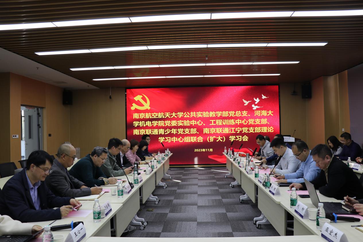 11月20日,公共实验教学部党总支与河海大学机电学院实验中心、工程训练中心党支部,南京联通江宁公司党支部、南京联通青少年业务部党支部围绕“加强产教融合,推进教育数字化,建设智慧校园”开展联学共建活动。公共实验教学部党总支委员、各党支部书记及机关党支部全体成员,河海大学工程训练中心党支部成员,南京联通青少年业务部党支部、南京联通江宁公司党支部成员参加了此次活动。会议由公共实验教学部副主任丁岚主持。