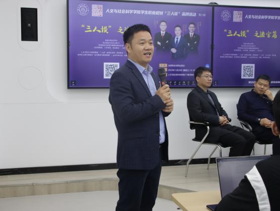 11月22日,人文与社会科学学院在院楼213智慧教室举办“三人谈”品牌活动之“法官篇”,江宁经济技术开发区人民法院审判委员会专职委员、三级高级法官夏志阳,江苏省高级人民法院四级高级法官张龑,江苏省法学会研究处副处长沈定成与同学们探讨“法官行业与职业规划”,本期“三人谈”由院长高志宏主持。