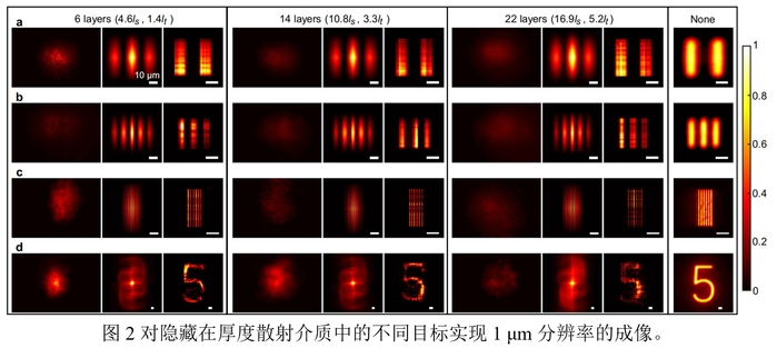 透过云雨雾霾、生物组织等散射介质光学成像在航空航天、军事救援、生物医学等众多领域具有重要应用。目前,基于弹道光子和散斑记忆效应的成像技术从原理上受散射介质厚度的限制。为了解决这一难题,研究人员提出了波前整形、传输矩阵、深度学习、基于光飞时间的扩散光学层析等成像技术,然而这些依赖于散射介质输入-输出关系的方法需要预知介质信息,导致应用面受限。此外,除了介质厚度和先验信息两大关键限制,目前的技术普遍存在成像分辨率低、对光源相干性要求高、对运动目标成像困难等诸多方面的缺陷。