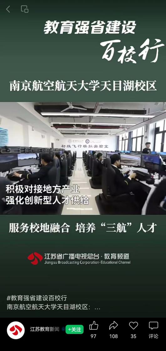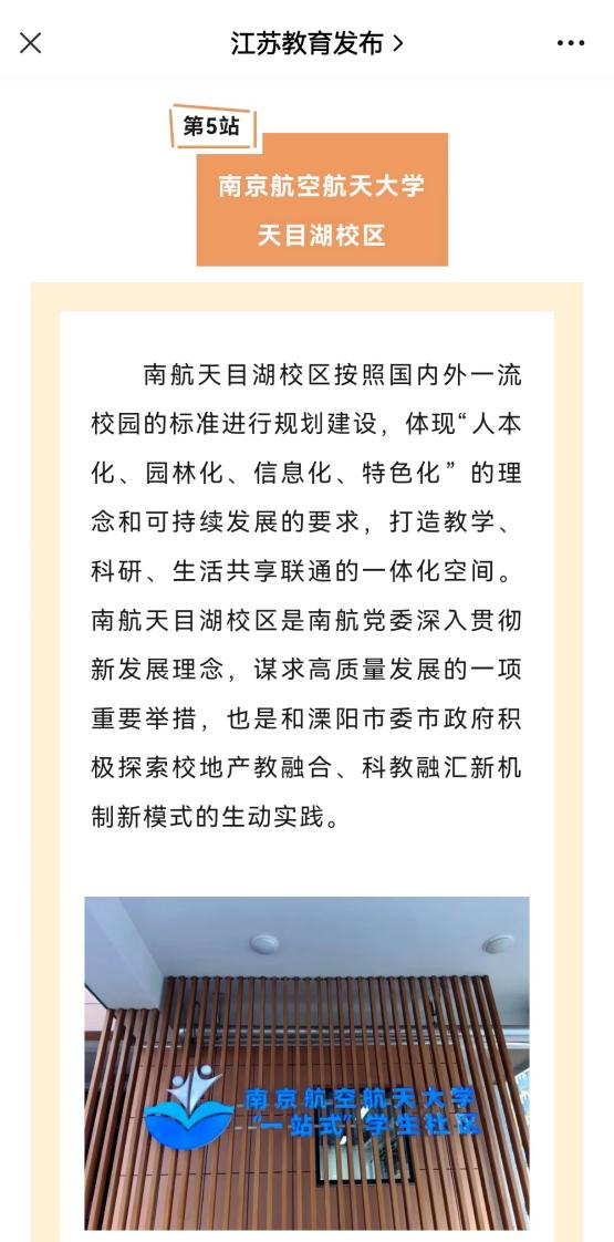 今年是全面贯彻党的二十大精神和以中国式现代化全面推进中华民族伟大复兴的开局之年,也是江苏在全国率先提出并积极探索教育现代化30周年。近日,南航天目湖校区参与“江苏教育现代化 30 周年”融媒体宣传活动,在“教育强省建设百校行”集中采访活动中受到省内多家主流媒体的关注和报道,回顾和展示了校区在江苏教育现代化进程中的成就与发展。