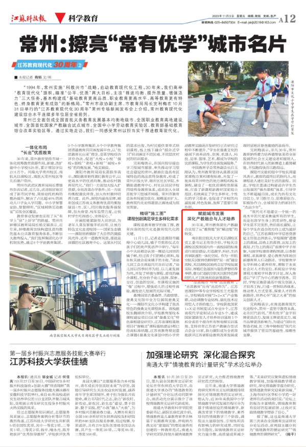 4.江苏科技报《常州:擦亮“常有优学”城市名片》http://www.jskjb.com:8081/xpaper/apprelease/115403/126813.shtml