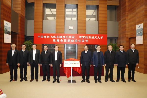 谭万庚、宋迎东分别代表中国商飞和学校签署新一轮战略合作框架协议,沈波、黄志球分别代表中国商飞和学校签署“中国商飞—南航大飞机研究院”共建协议,贺东风、周新民、谭万庚、沈波、吴光辉、单忠德、姜斌、黄志球、宋迎东、张启钱共同为“中国商飞—南航大飞机研究院”揭牌。