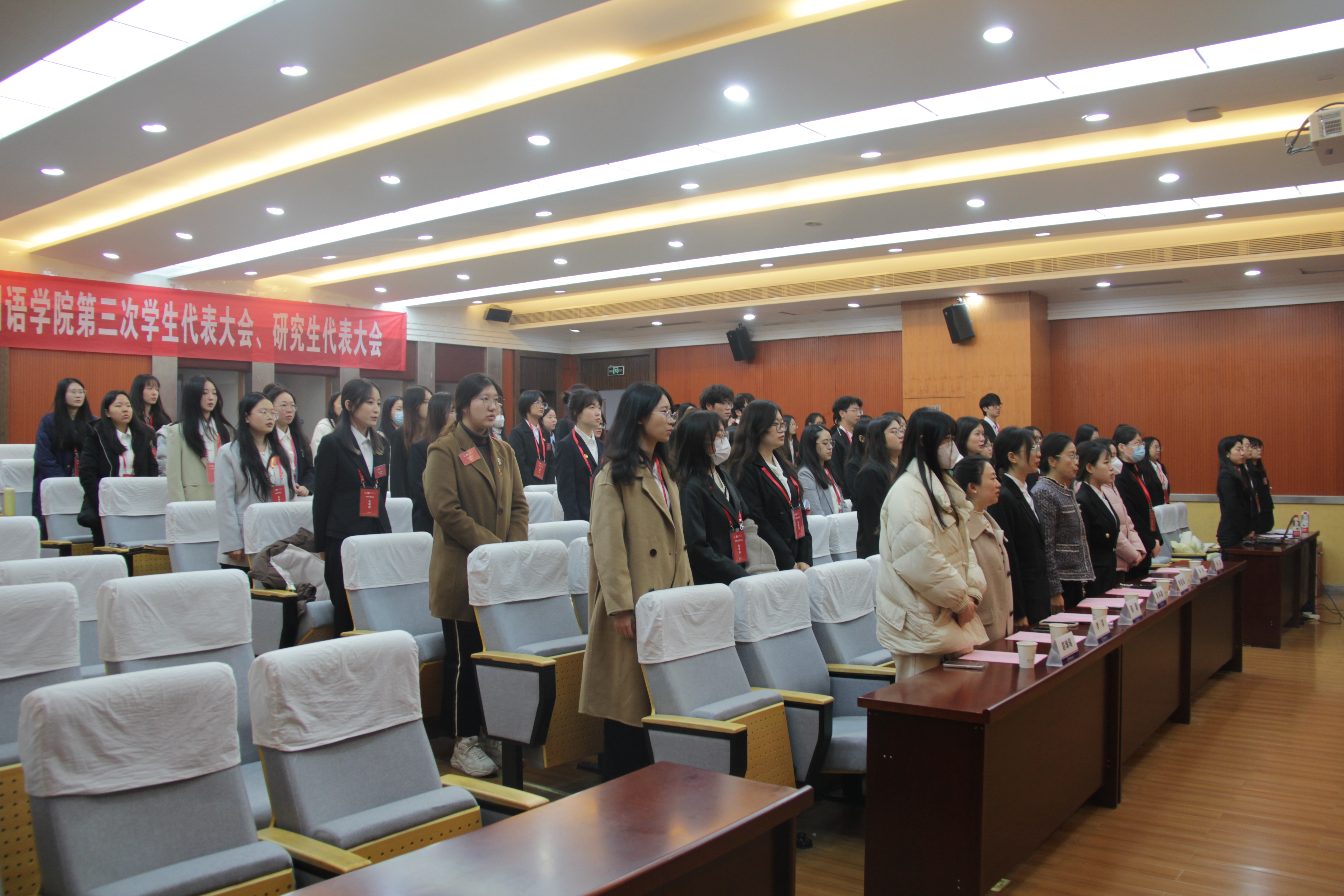 大会通过民主选举,产生了徐佳凝等三名外国语学院第三届学生会主席团成员,邓昱欣等三名第三届研究生会主席团成员,许欣宜、王新怡等九名学生委员会委员,王一珩、祝加利等六名研究生委员会委员。大会在庄严的校歌声中顺利闭幕。