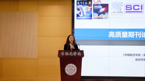 来院期间,《航空学报》杂志社社长蔡斐做了题为《高质量期刊论文写作与投稿》的报告。报告主要从科研选题、论文写作规范化、审稿常见问题辨析、期刊投稿四方面展开。她指出论文写作最基本的规范是踏踏实实做学问,她从文章类型、行文结构两方面简要介绍了论文写作规范并结合日常编辑工作中的稿件实例辨析了论文审稿中的常见问题。报告现场,同学们积极和专家互动提问,反响热烈,同学们纷纷表示本次报告干货多,适用指导性强,受益颇多。