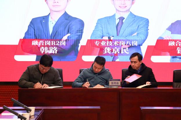 活动首先举行了信息化处2023-2026年教职工岗位聘任仪式,谢健介绍了本轮岗位聘任的整体情况,本轮岗位聘任新设了技术管理融合岗位,明确了各岗位可量化的考核目标,在全体教职工的共同参与下形成了方案,按照学校规定程序顺利开展。张焱与参加本轮岗位聘任的教职工分别上台签署岗位聘书,并合影留念。