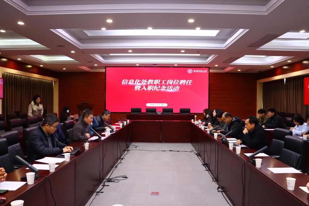 为加强信息化处文化建设和队伍建设,鼓励教职工爱岗敬业、树立目标、创先争优,增强工作使命感、责任感、荣誉感和成就感,激发大家干事创业的热情,11月30日上午,信息化处举办了教职工岗位聘任暨入职纪念活动,信息化处处长张焱,副处长王兴虎、谢健及全体教职工参加了本次活动。活动由谢健主持。