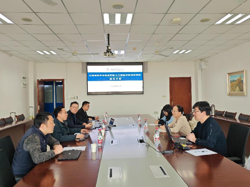 在双方交流环节,赵彦超从学院概况、师资队伍及科学研究、人才培养及国际化等方面对学院情况进行了介绍。航天晨信研究员赵思聪对公司的发展历程、人才构成、业务组成、以及核心竞争力进行了详细介绍。与会老师详细介绍了各自的研究方向,分享了南航在鲁棒机器学习、主动学习、自然语言处理、大模型等相关领域的研究进展与技术优势,双方就智能计算领域达成初步合作意向。