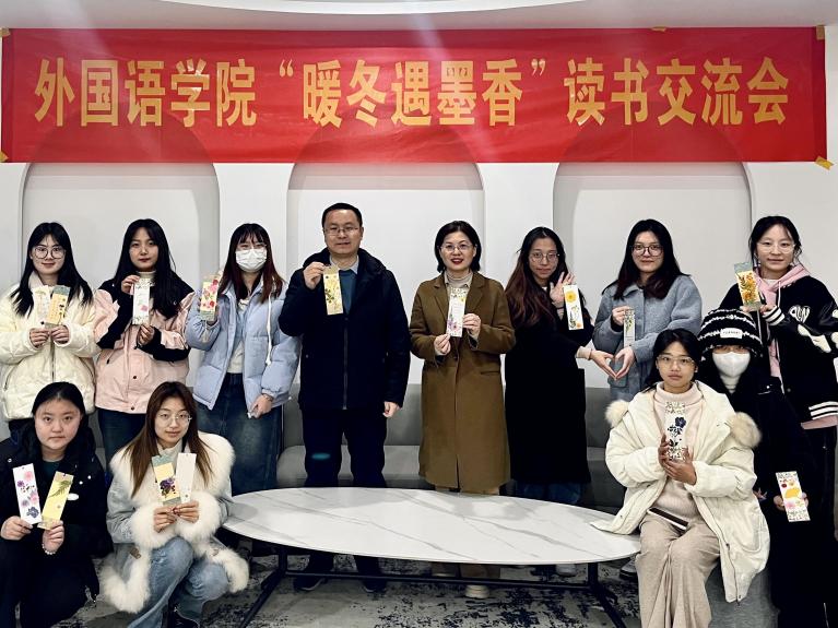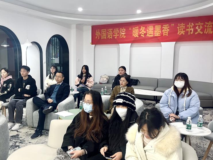 为增加师生交流,共享文学魅力,11月30日下午,外国语学院2021级本科生举办“暖冬遇墨香”读书交流会,我校教师发展与教学评估中心主任朱建军、副主任杨兰芳、外国语学院2021级本科生代表参与了本次活动。