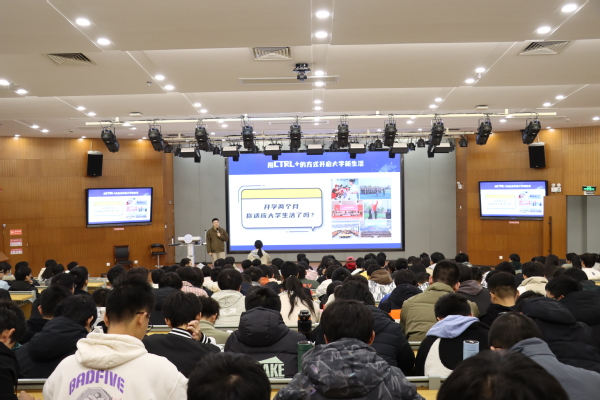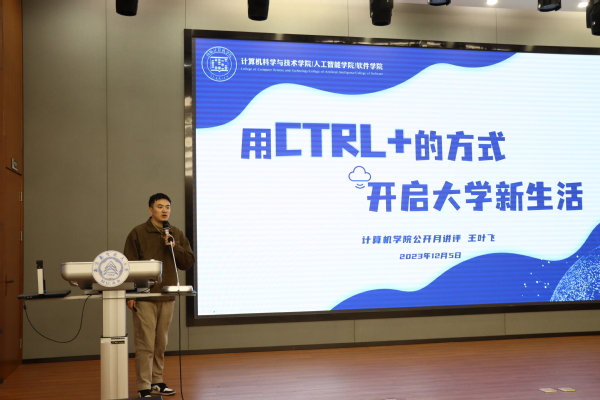 为助力2023级本科新生顺利完成角色转变,快速适应大学学习、生活节奏,提升适应能力,12月5日晚,计算机科学与技术学院/人工智能学院/软件学院在天目湖校区巡天楼报告厅召开了“新生适应力通关宝典——用CTRL+的方式打开大学生活”主题公开月讲评,本科生辅导员王叶飞担任主讲人,2023级本科生参加。